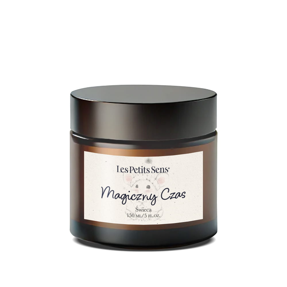 Świeca Sojowa Magiczny Czas to doskonały sposób na stworzenie przytulnej atmosfery i wypełnienie pomieszczenia ulubionym zapachem. Wprowadź atmosferę świątecznego ciepła, radości i rodzinnej bliskości. Stwórz wyjątkowy nastrój na zimowe wieczory i wspólne rodzinne chwile. Pozwól, aby słodkie, owocowe nuty mandarynki i pomarańczy w połączeniu z drzewnym tłem czarnego świerku i korzennym goździkiem wypełniły przestrzeń pokoju Twojego dziecka przytulnym nastrojem.